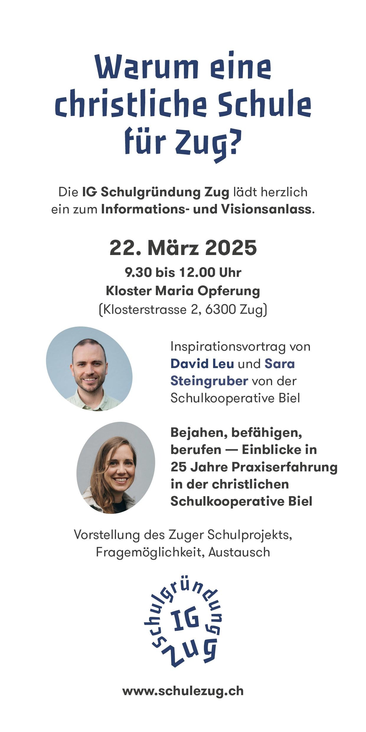 Wir sind eine Gruppe bestehend aus engagierten, katholischen Eltern, Pädagogen und Visionären aus der Region Zug, die gemeinsam eine Schule gründen. Unser Ziel ist es im Sommer 2026 mit einem Kindergarten und einer Primarschule zu starten.